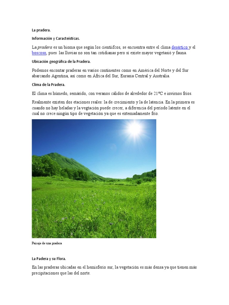 La pradera es un bioma que según los cientíifcos, se encuentra entre el clima desértico y el
