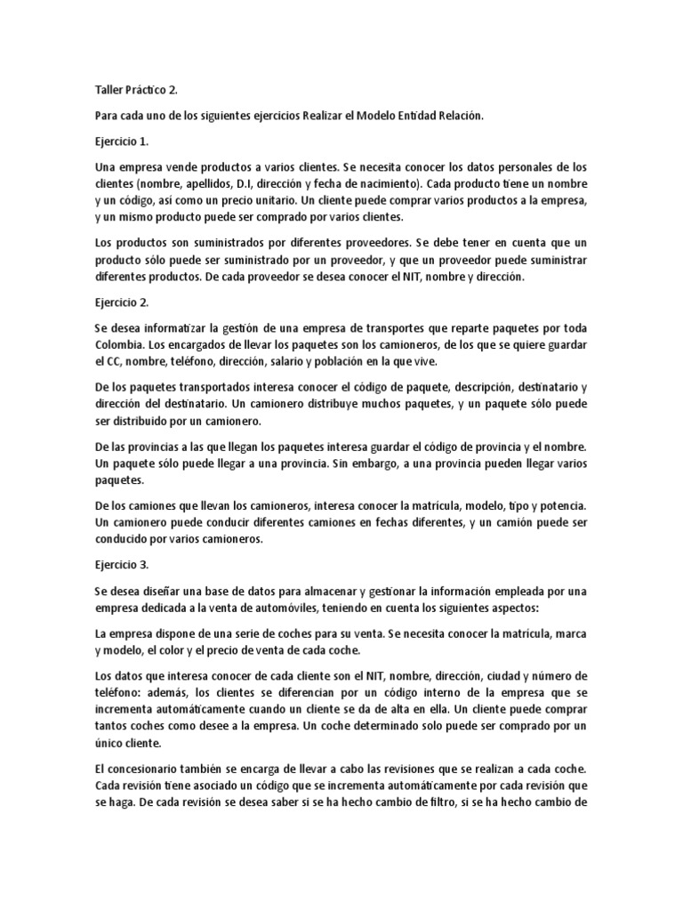 Para cada uno de los siguientes ejercicios Realizar el Modelo Entidad Relación.