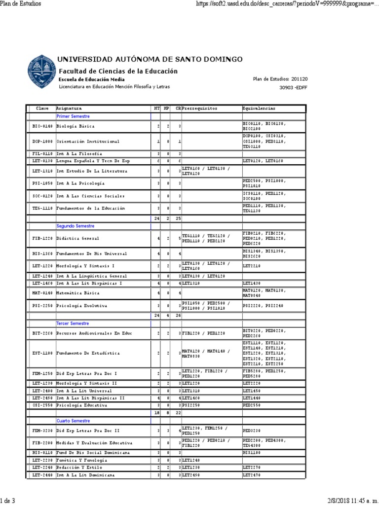 TEG-2130 His Educa Univ Y Dominicana 3 0 3 TEG1110 / PED1110 PED2120, PED2130,