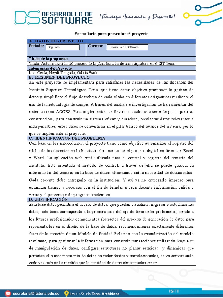 En el Instituto Superior Tecnológico Tena se necesita automatizar los sílabos de la Carrera