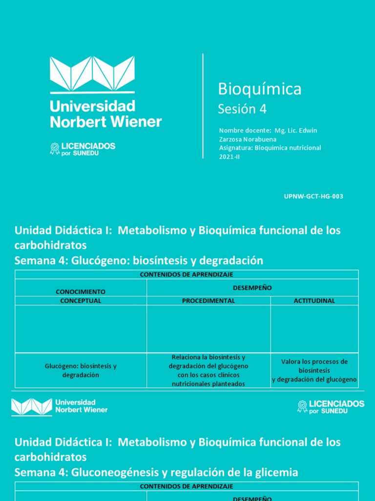 Semana 4: Glucógeno: biosíntesis y degradación