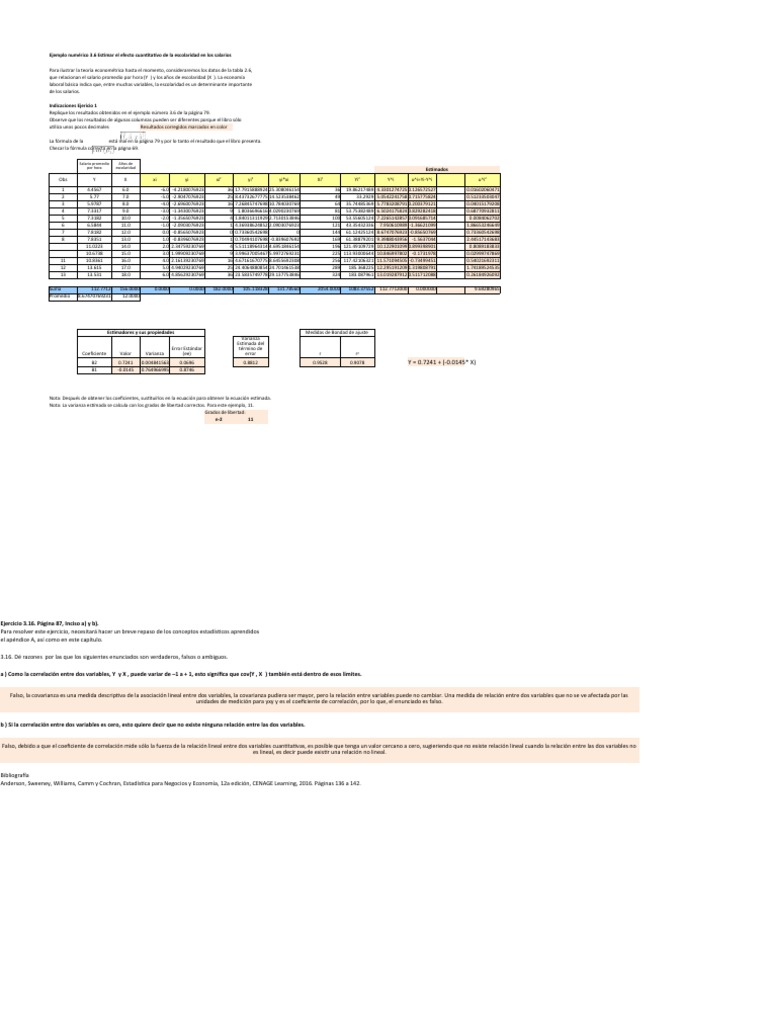 que relacionan el salario promedio por hora (Y ) y los años de escolaridad (X ). La economía