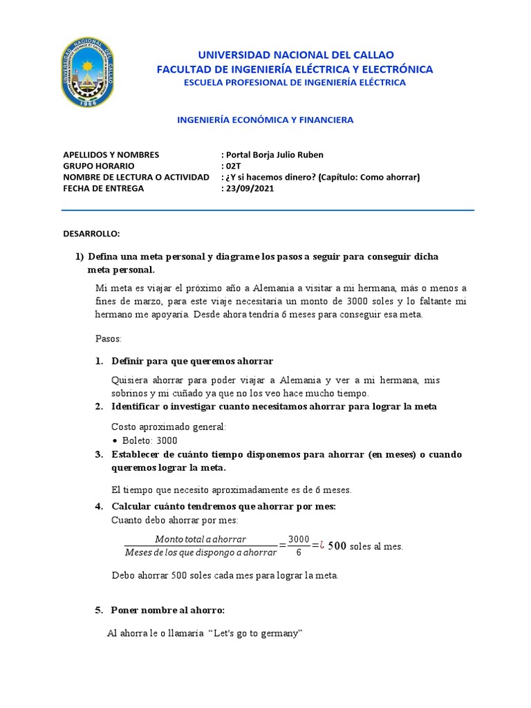 Debo ahorrar 500 soles cada mes para lograr la meta.