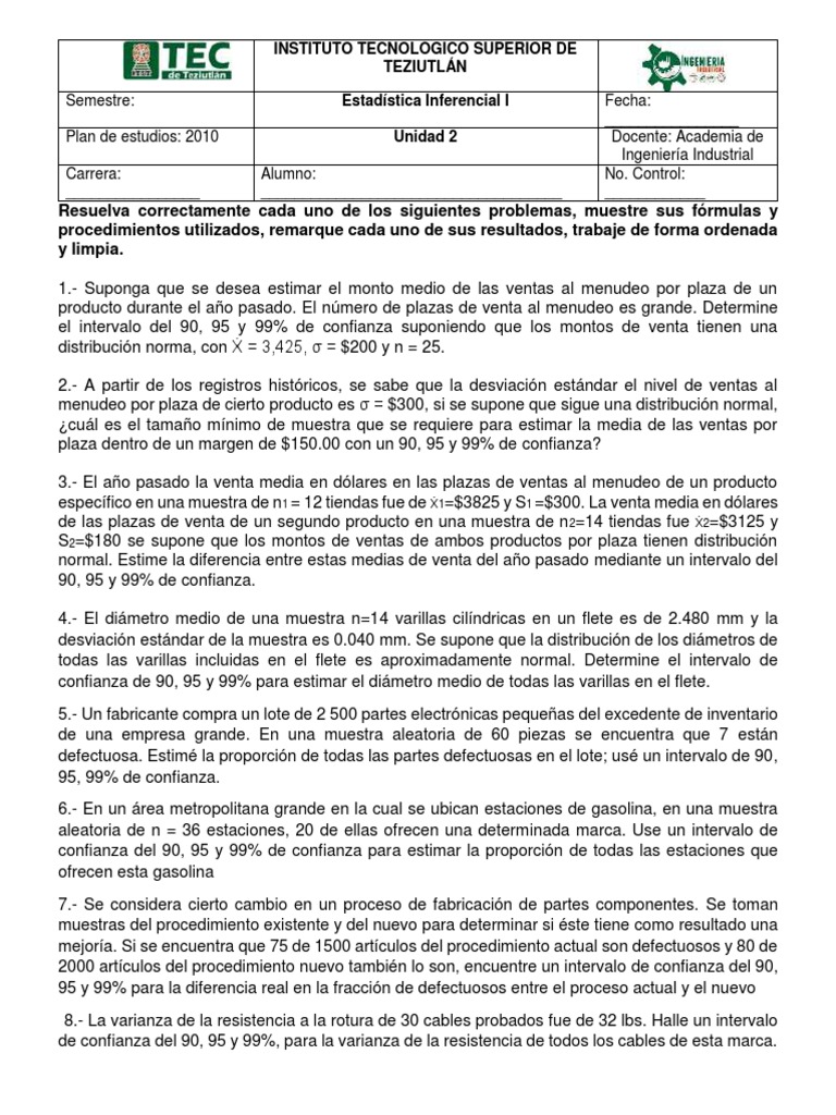 1.- Suponga que se desea estimar el monto medio de las ventas al menudeo por plaza de un
