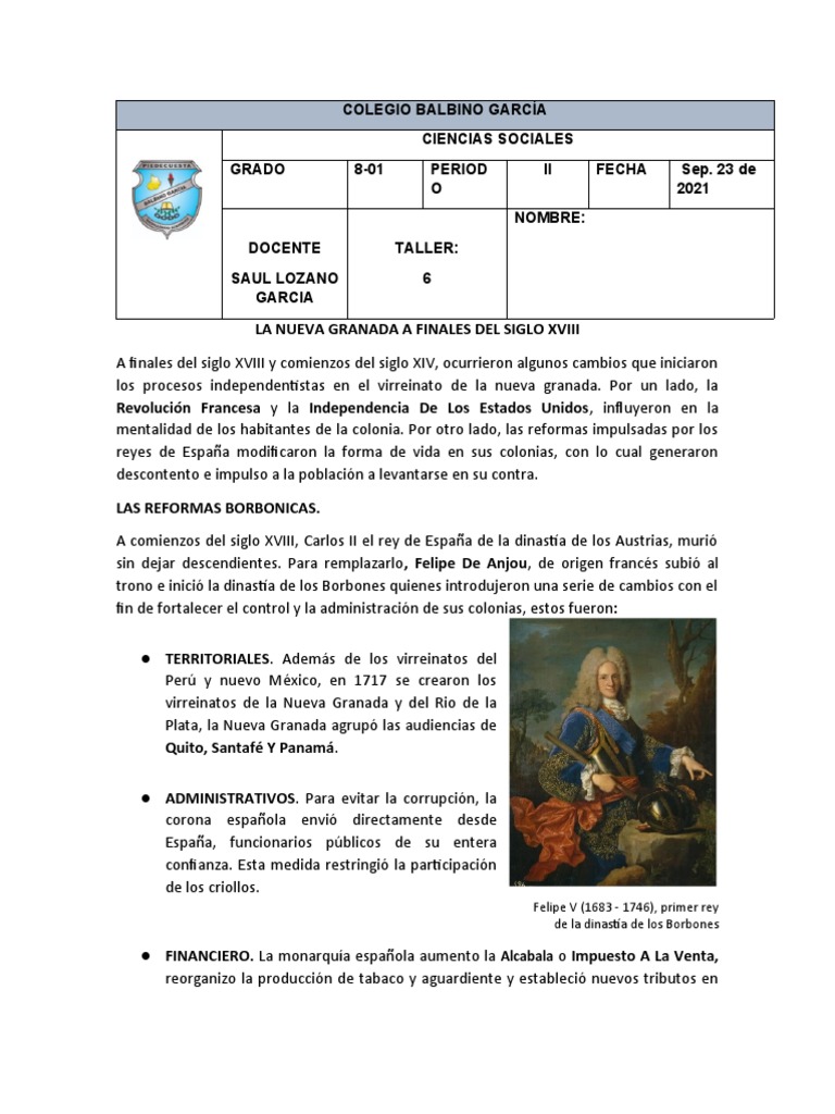 nuevos virreinatos. Uno de ellos era el virreinato de la Nueva Granada que