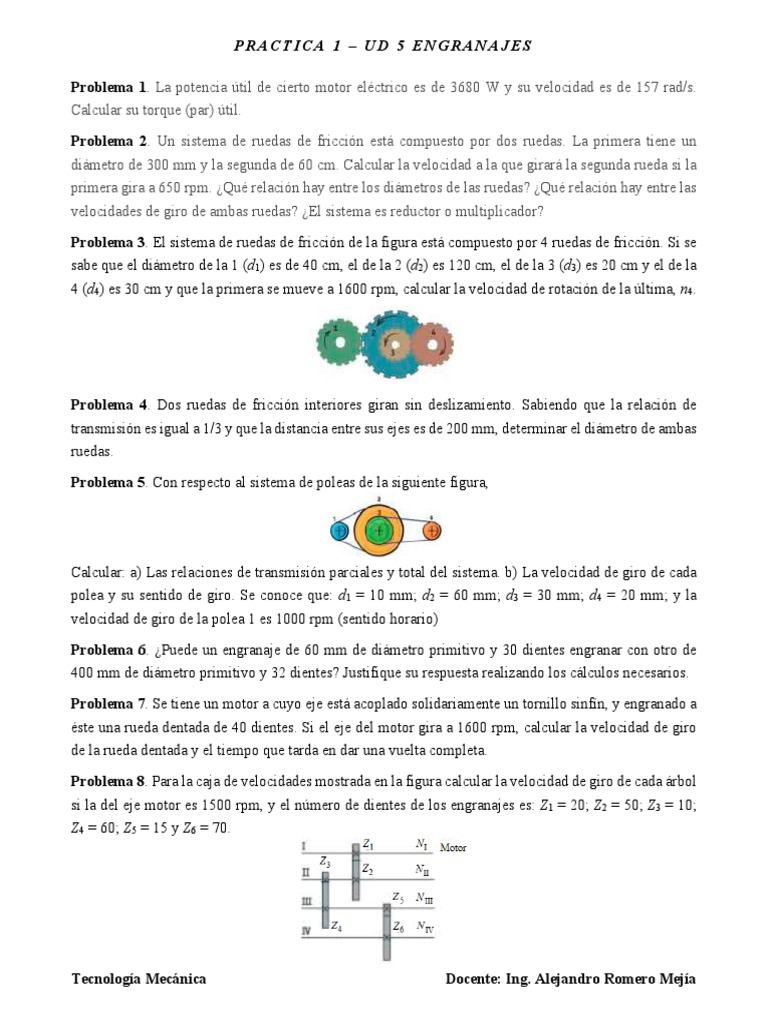 Problema 11. Para el siguiente conjunto de ruedas de fricción (tren de ruedas), sus correspondientes