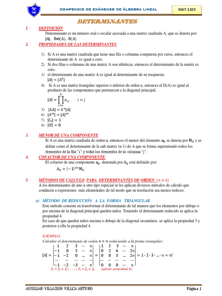determinante de orden “n” a orden ( ) , lo cual facilita la resolución del mismo.