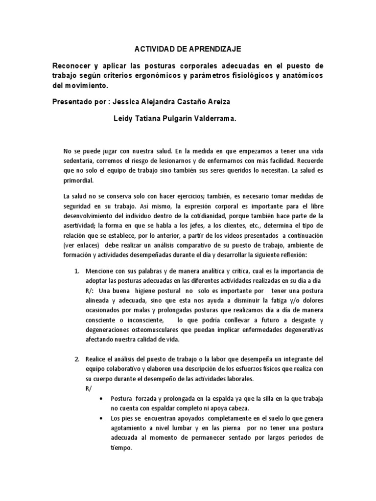 R/: Una buena higiene postural no solo es importante por tener una postura