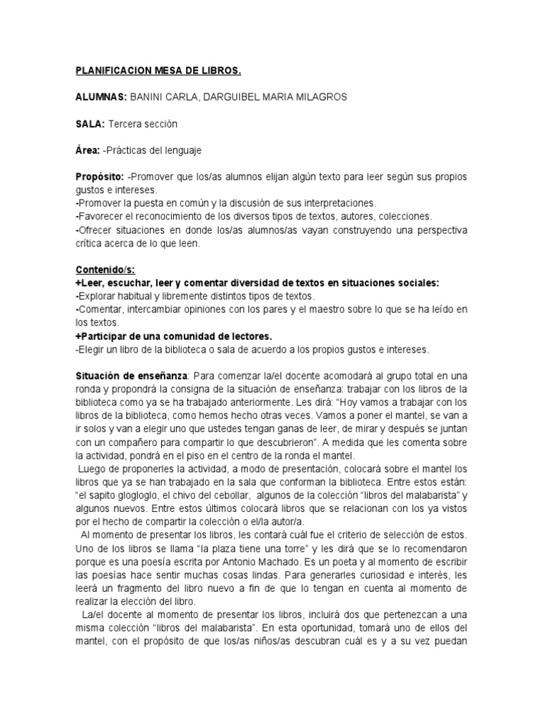 Planificacion Mesa de Libros