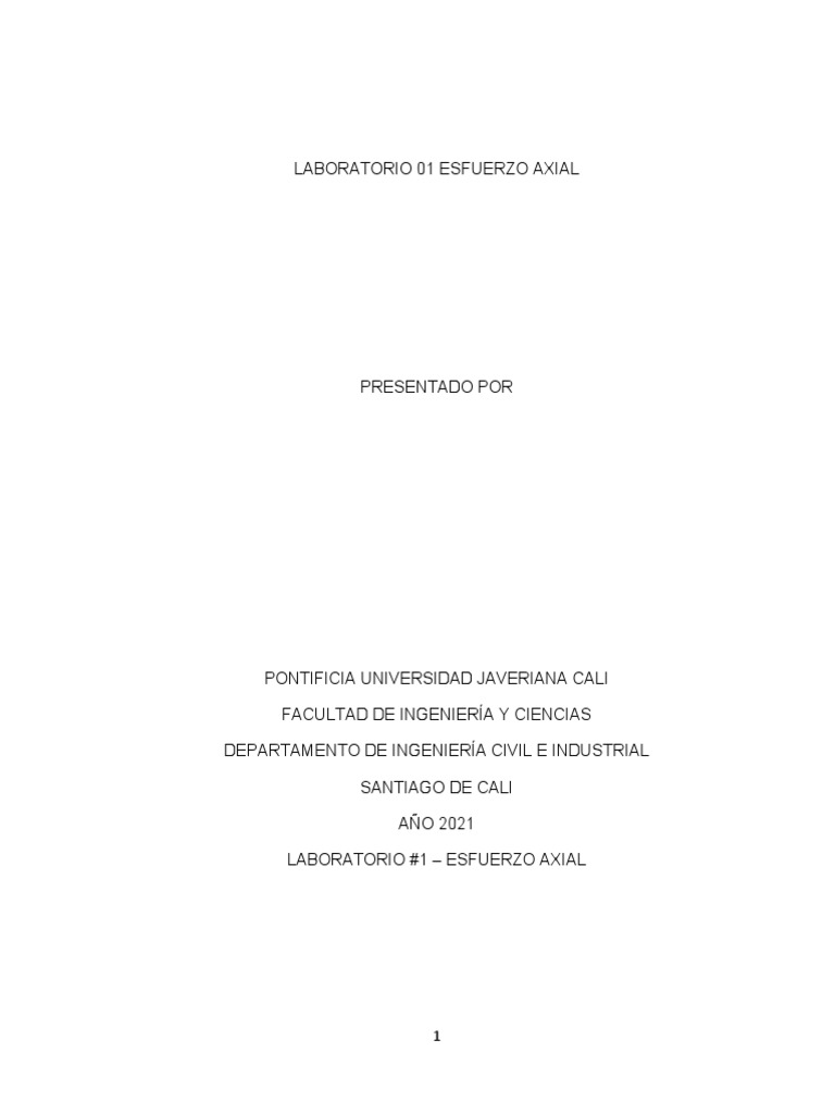 Madera, I., Guerrero, L., Galvis. M, GUÍA DE LABORATORIO #1 – ESFUERZO AXIAL, PUJ, 2021.