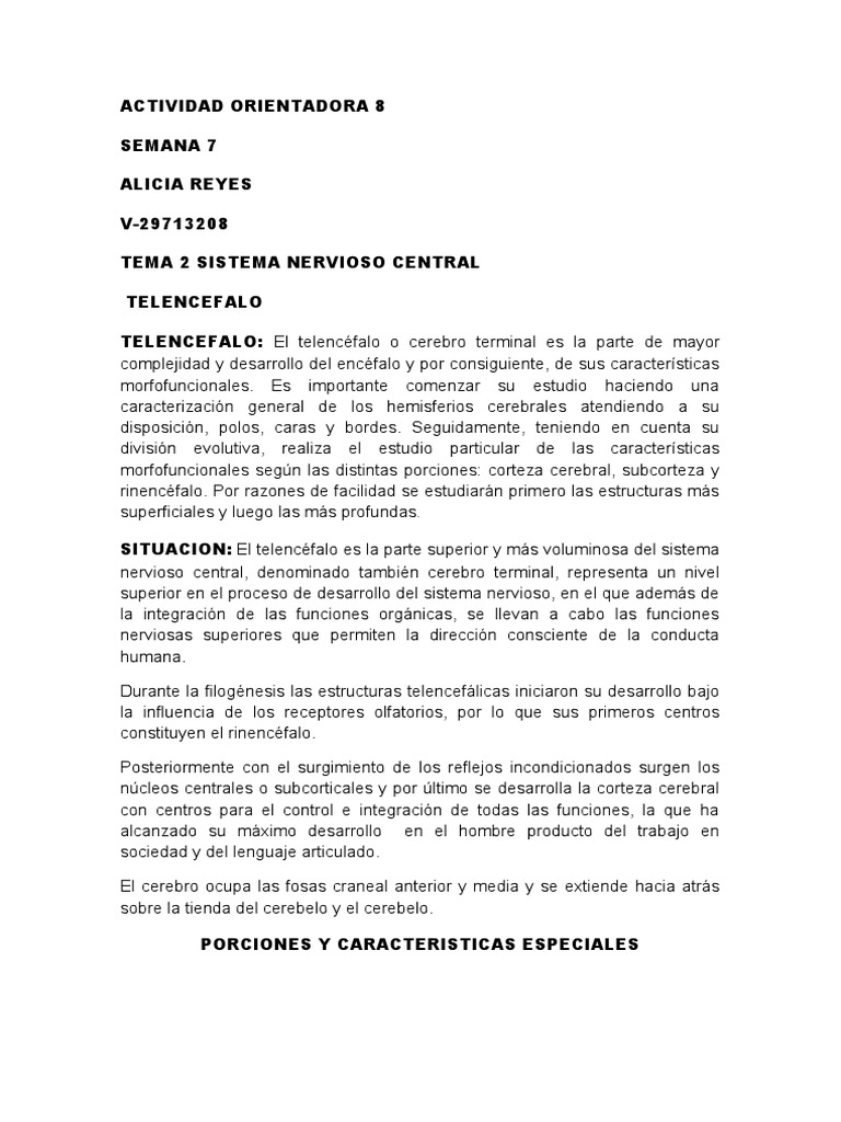 TELENCEFALO: El telencéfalo o cerebro terminal es la parte de mayor