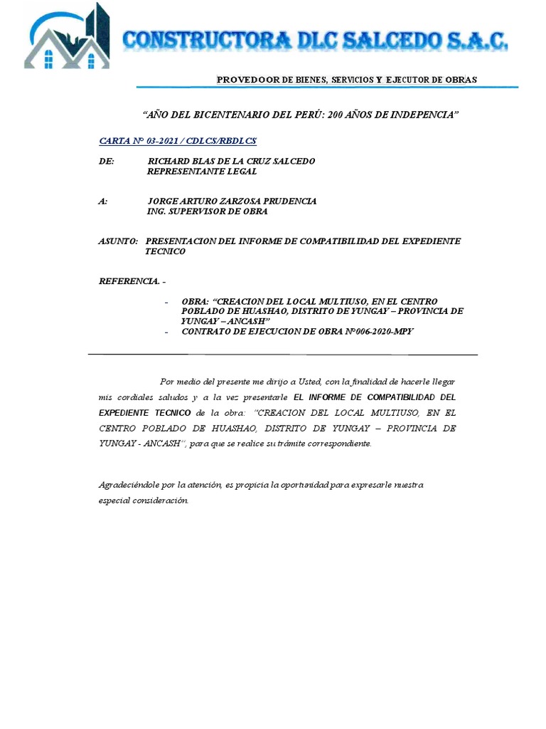 mis cordiales saludos y a la vez presentarle EL INFORME DE COMPATIBILIDAD DEL