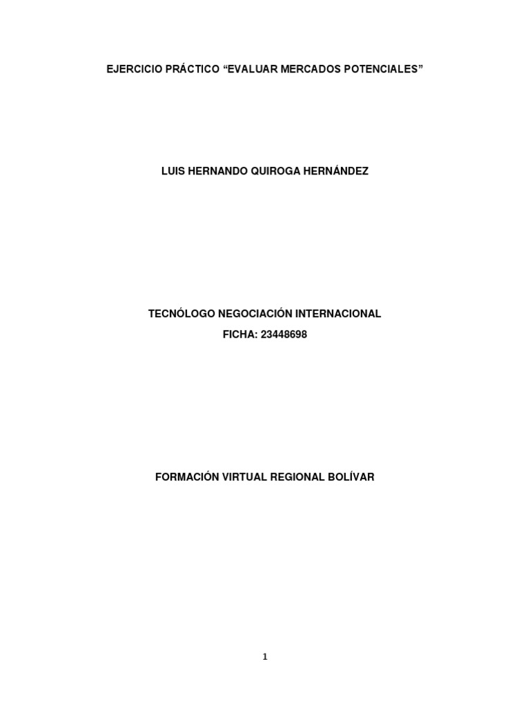 EJERCICIO PRÁCTICO “EVALUAR MERCADOS POTENCIALES”