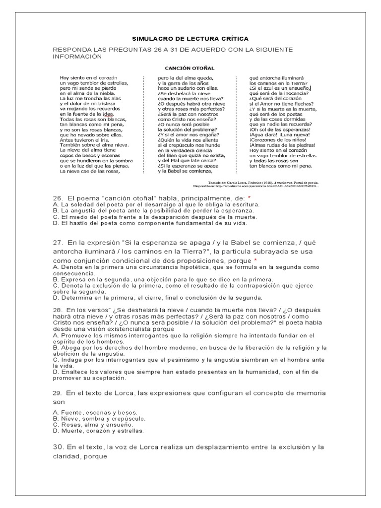 31. Teniendo en cuenta la estructura del poema, puede afirmarse que la