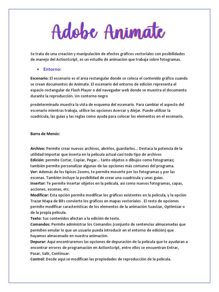 de manejo del ActionScript, es un estudio de animación que trabaja sobre fotogramas.