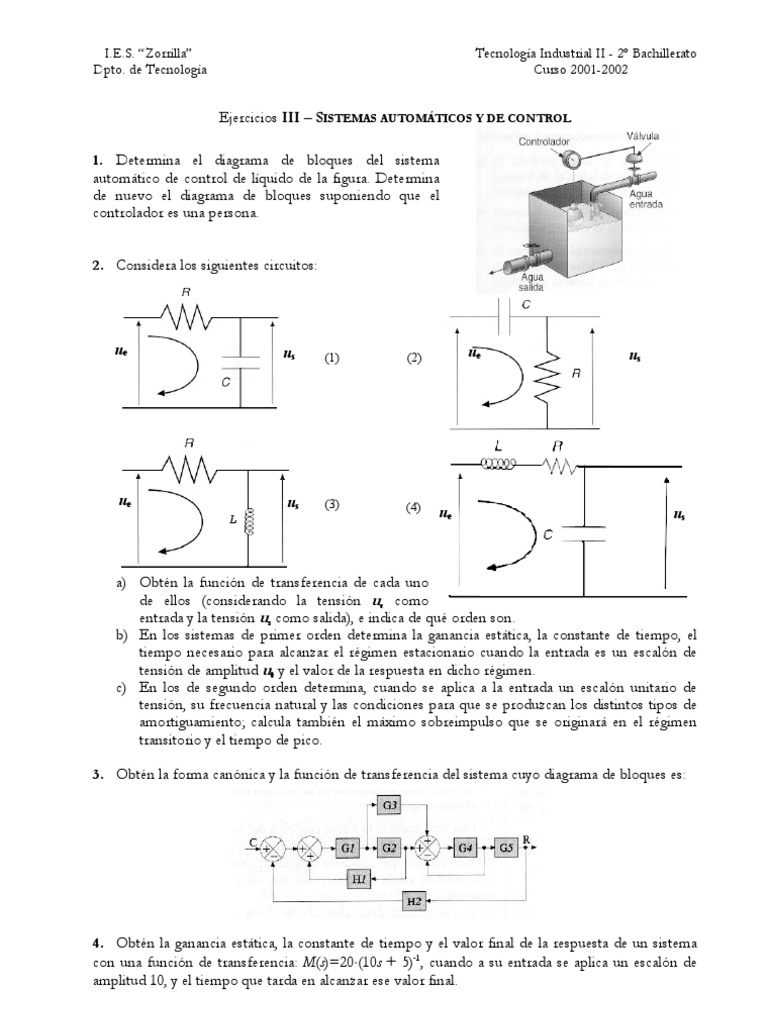automático de control de líquido de la figura. Determina