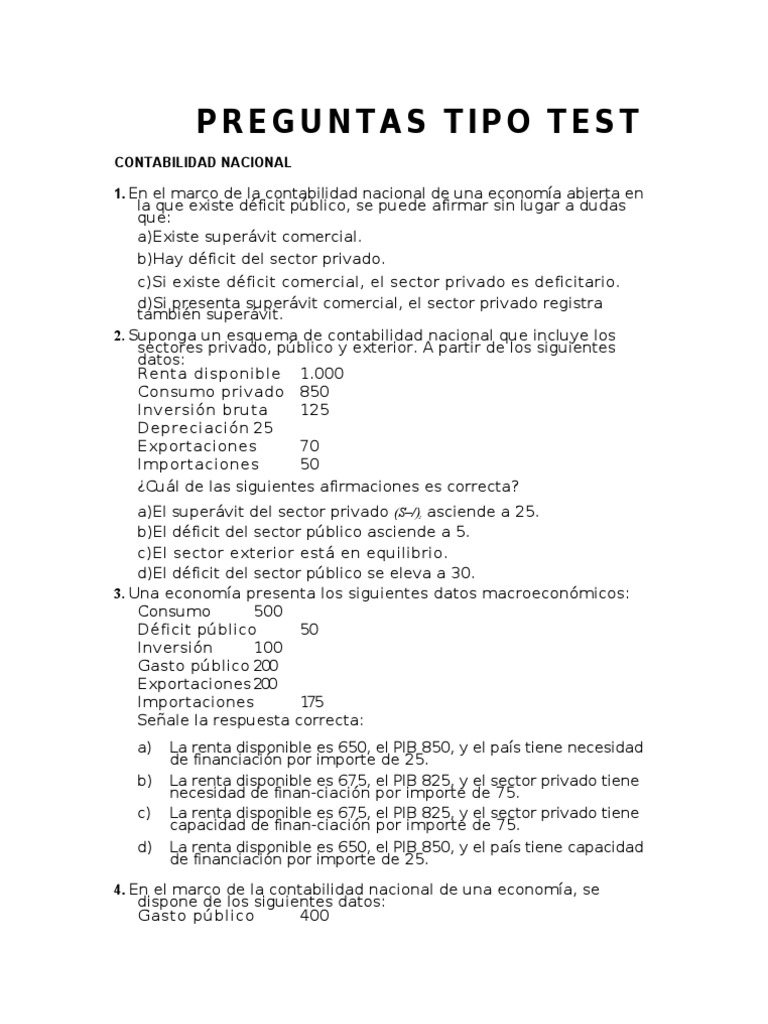 4. En el marco de la contabilidad nacional de una economía, se
