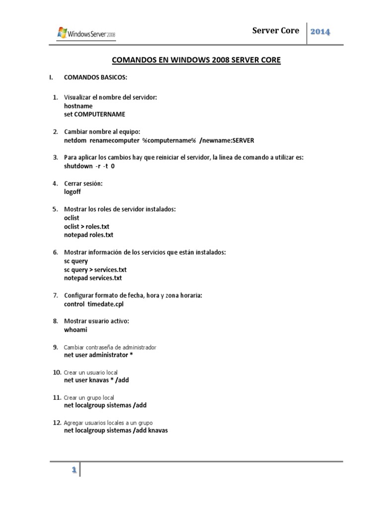 COMANDOS EN WINDOWS 2008 SERVER CORE