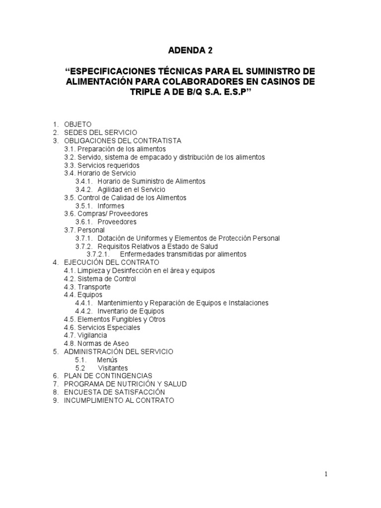 Casino de Comidas-Pliego de Condiciones Tecnicas