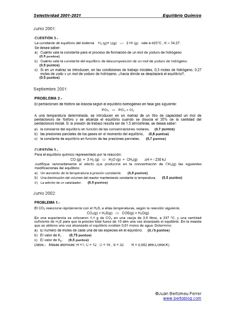 Selectividad 2001-2021 Equilibrio Químico