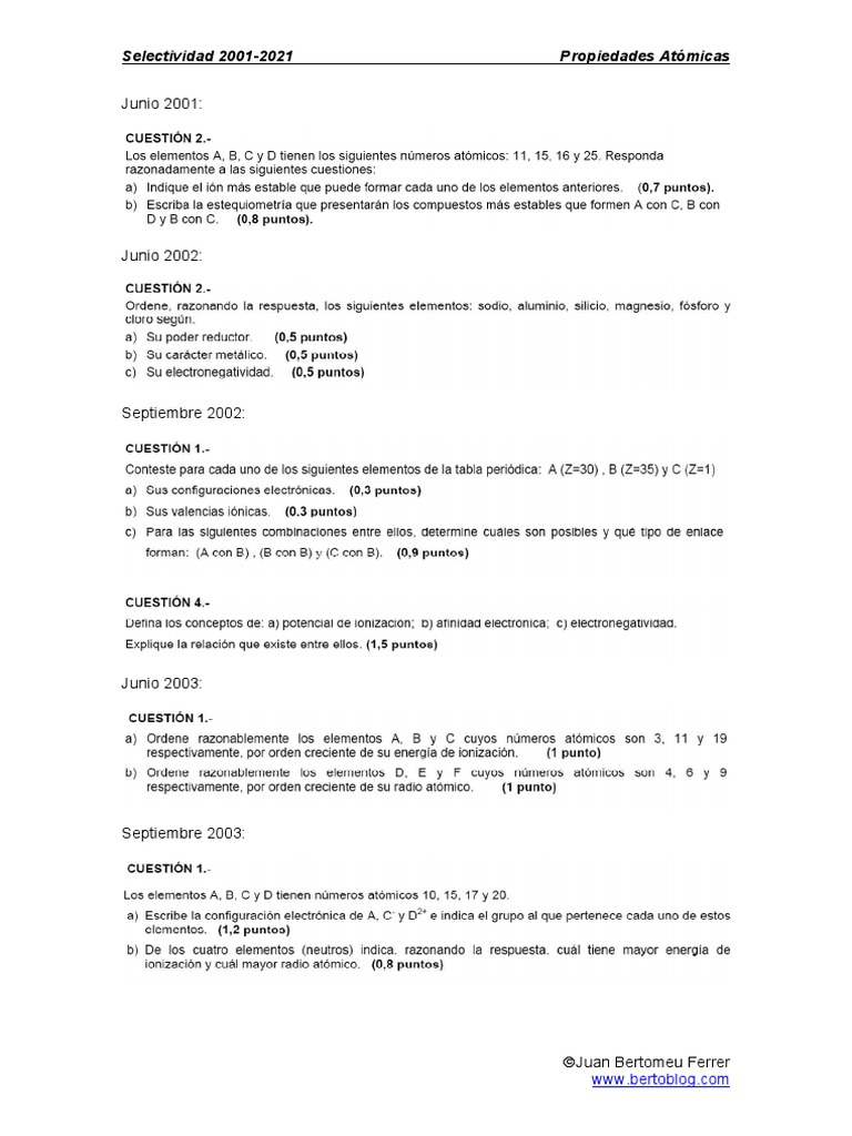 Selectividad 2001-2021 Propiedades Atómicas