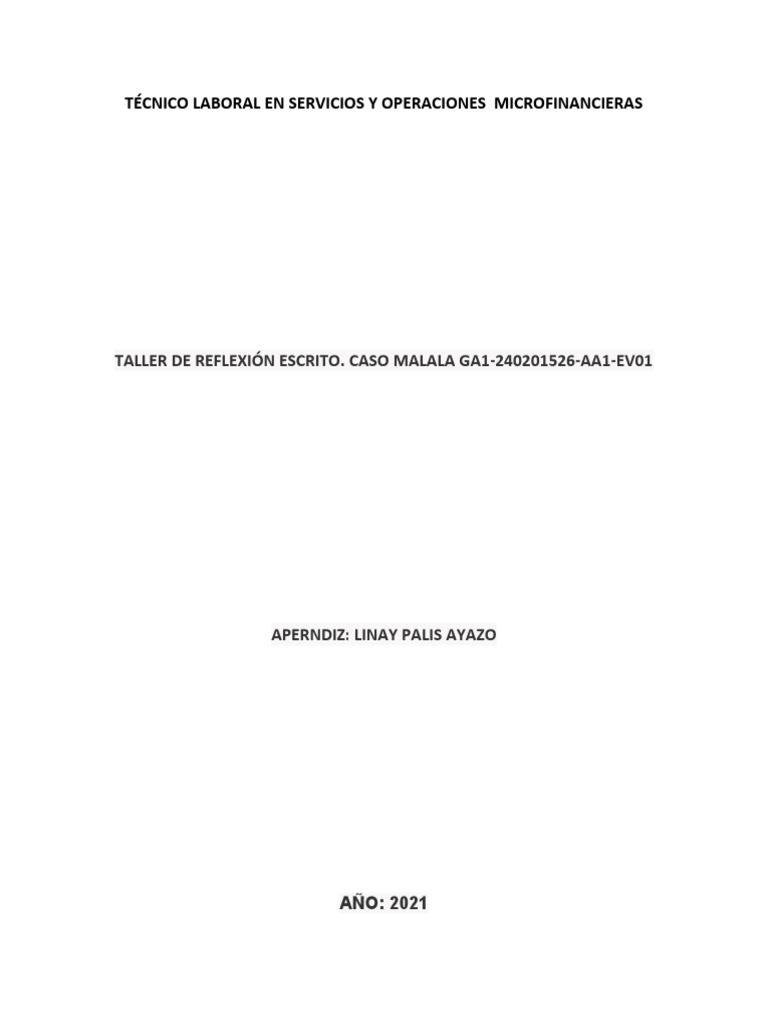 TALLER DE REFLEXIÓN ESCRITO. CASO MALALA GA1-240201526-AA1-EV01