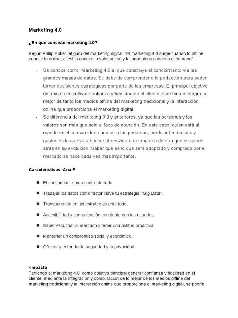 - Se conoce como Marketing 4.0 al que construye el conocimiento vía las