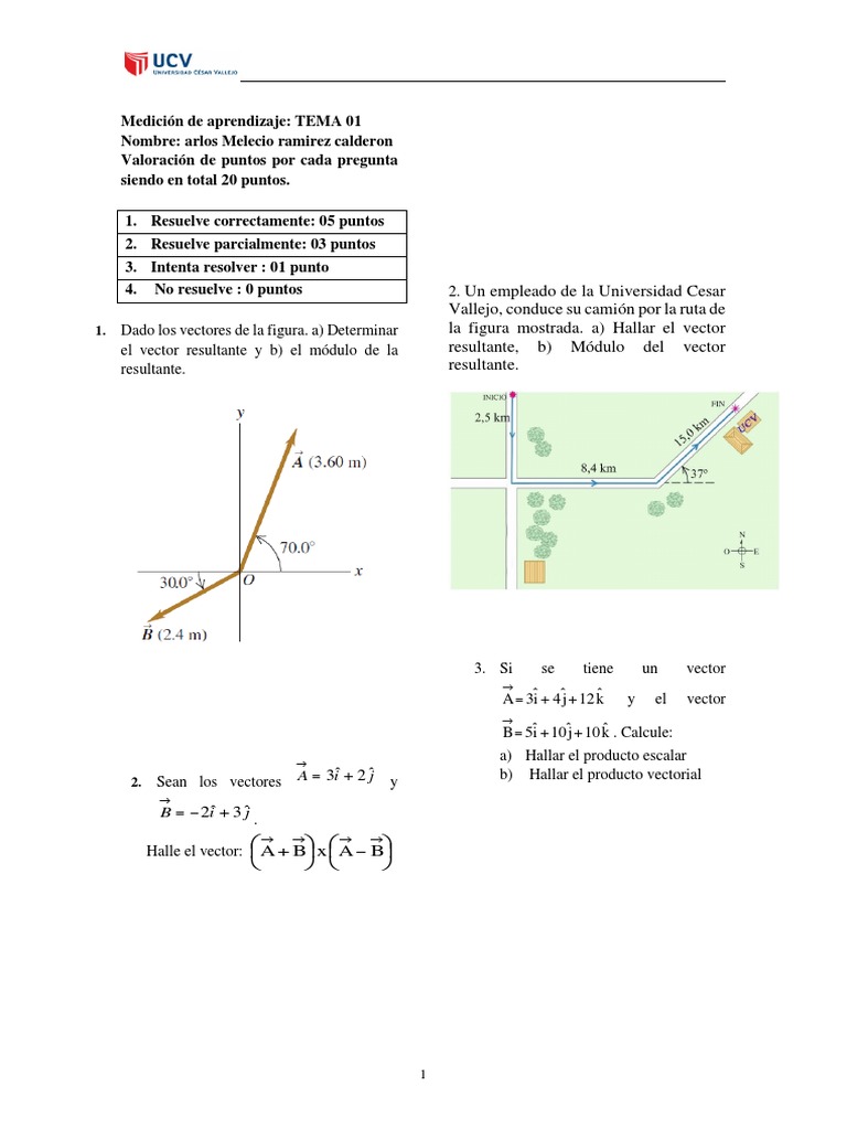 1. Dado los vectores de la figura. a) Determinar la figura mostrada. a) Hallar el vector
