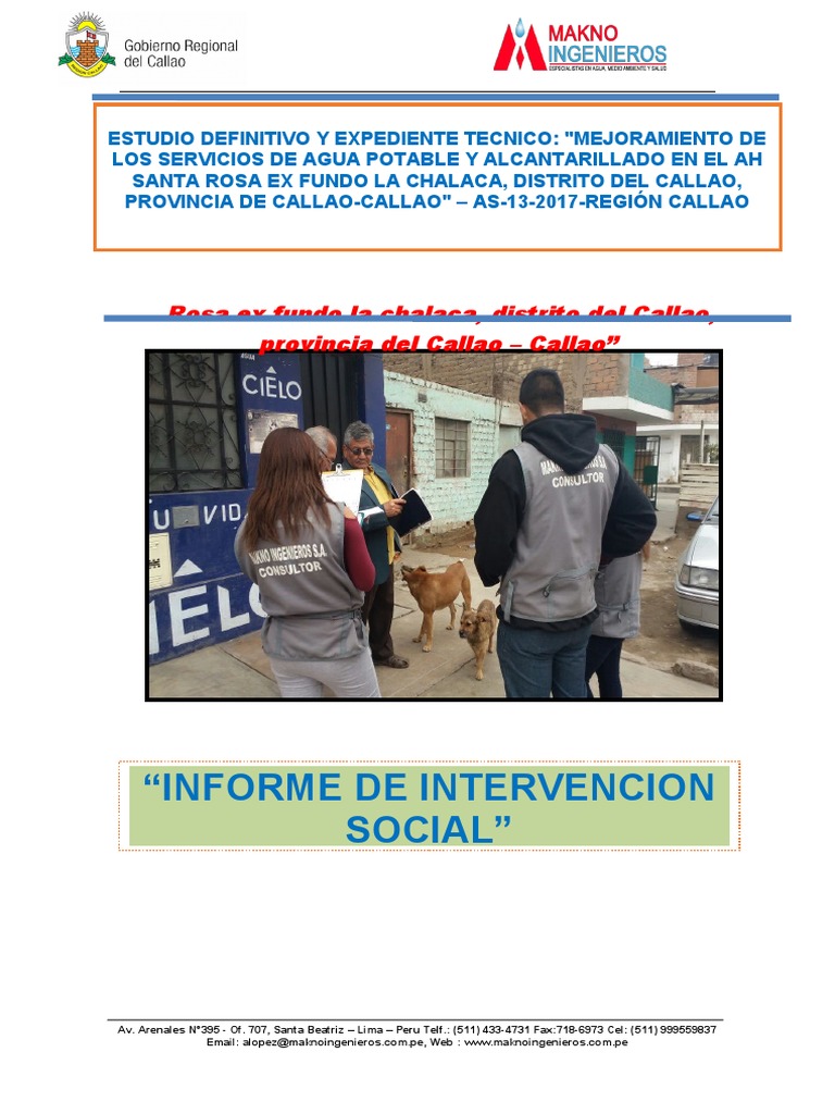 Callao” financiado por el gobierno Regional del Callao. Consultoría que se llevó