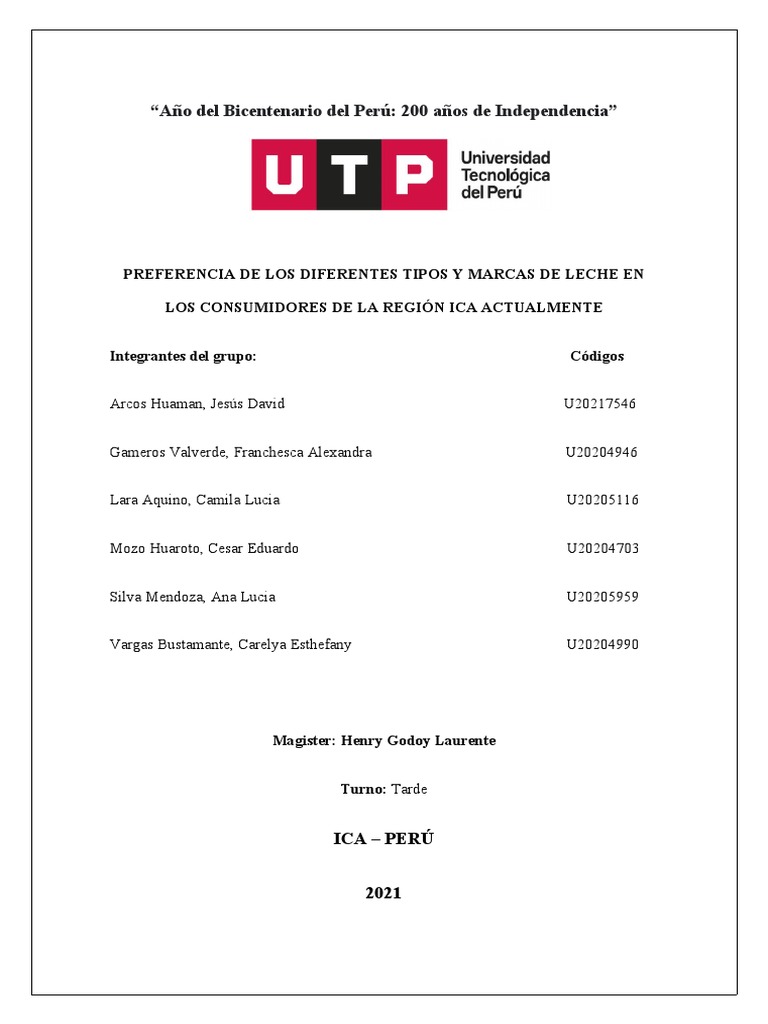 población de Ica dando a conocer la preferencia de las diversos tipos y marcas de leche.