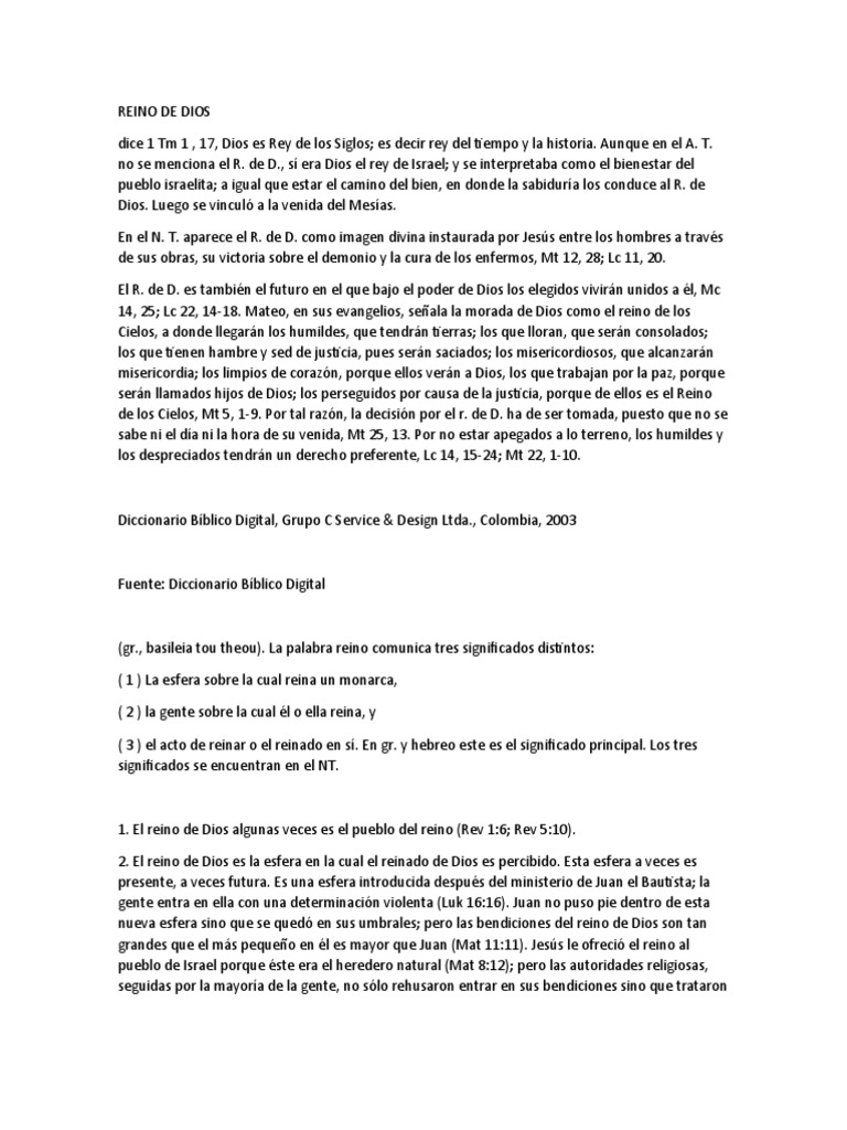 Dios”. Multiplicaron sus referencias en este sentido: Col. 1.13; 1 Tes. 2.12; Apoc. 1. 6 y 9; y 5.10.