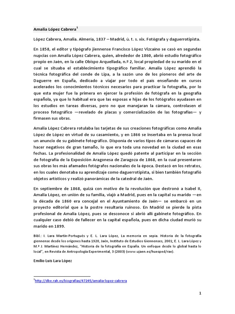 López Cabrera, Amalia. Almería, 1837 – Madrid, ú. t. s. xix. Fotógrafa y daguerrotipista.