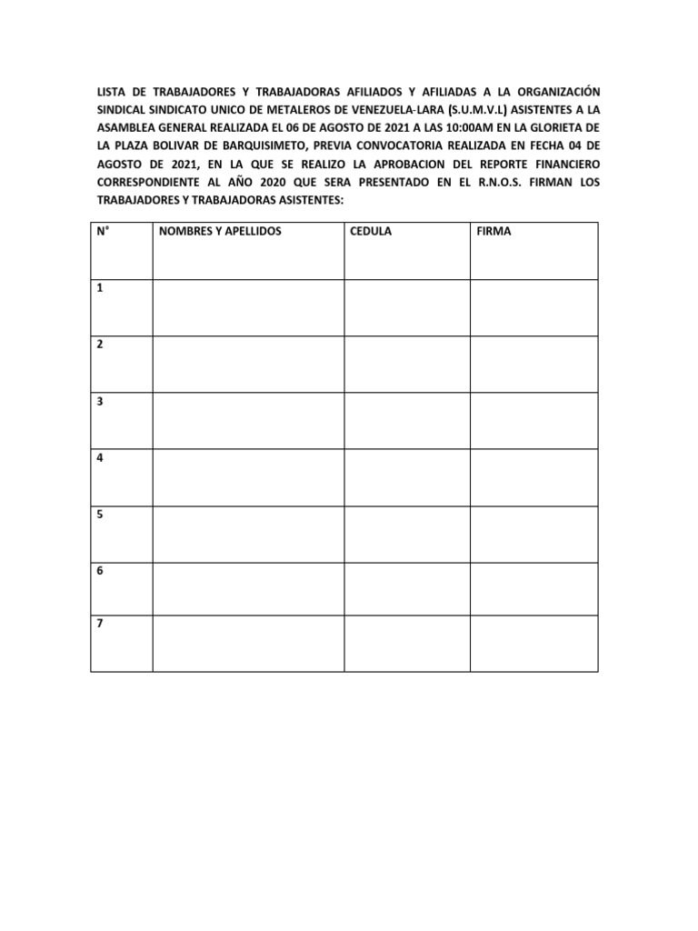 SINDICAL SINDICATO UNICO DE METALEROS DE VENEZUELA-LARA (S.U.M.V.L) ASISTENTES A LA