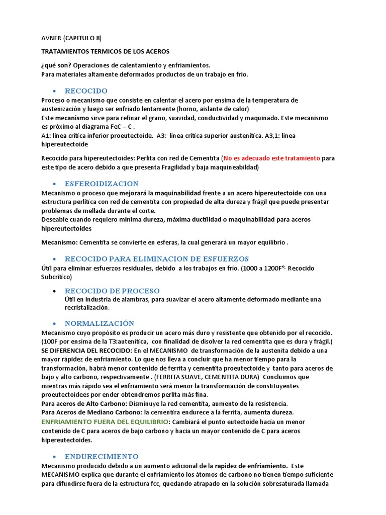 Útil para eliminar esfuerzos residuales, debido a los trabajos en frío. (1000 a 1200F°- Recocido