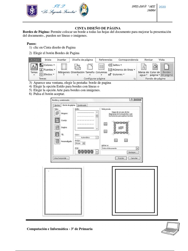 Bordes de Página: Permite colocar un borde a todas las hojas del documento para mejorar la presentación