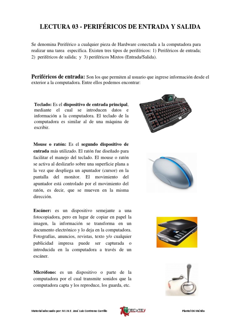 LECTURA 03 - PERIFÉRICOS DE ENTRADA Y SALIDA