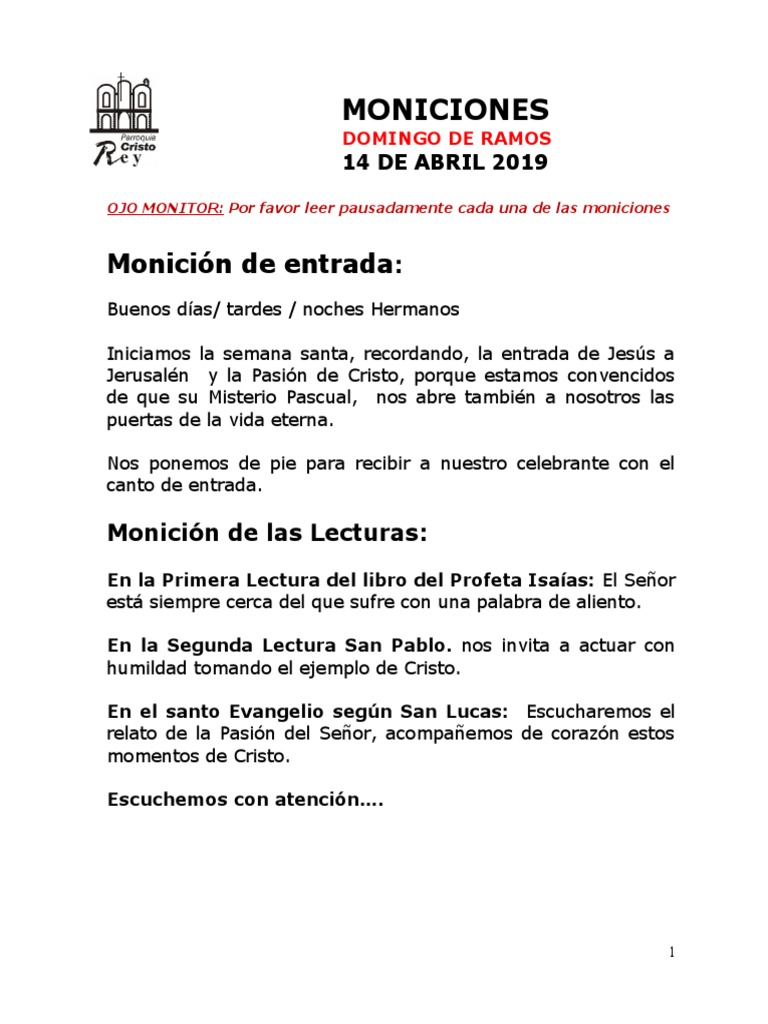 OJO MONITOR: Por favor leer pausadamente cada una de las moniciones