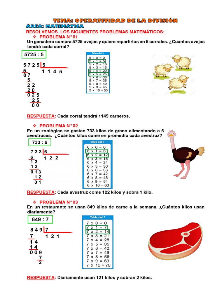 RESPUESTA: Cada avestruz come 122 kilos y sobra 1 kilo.