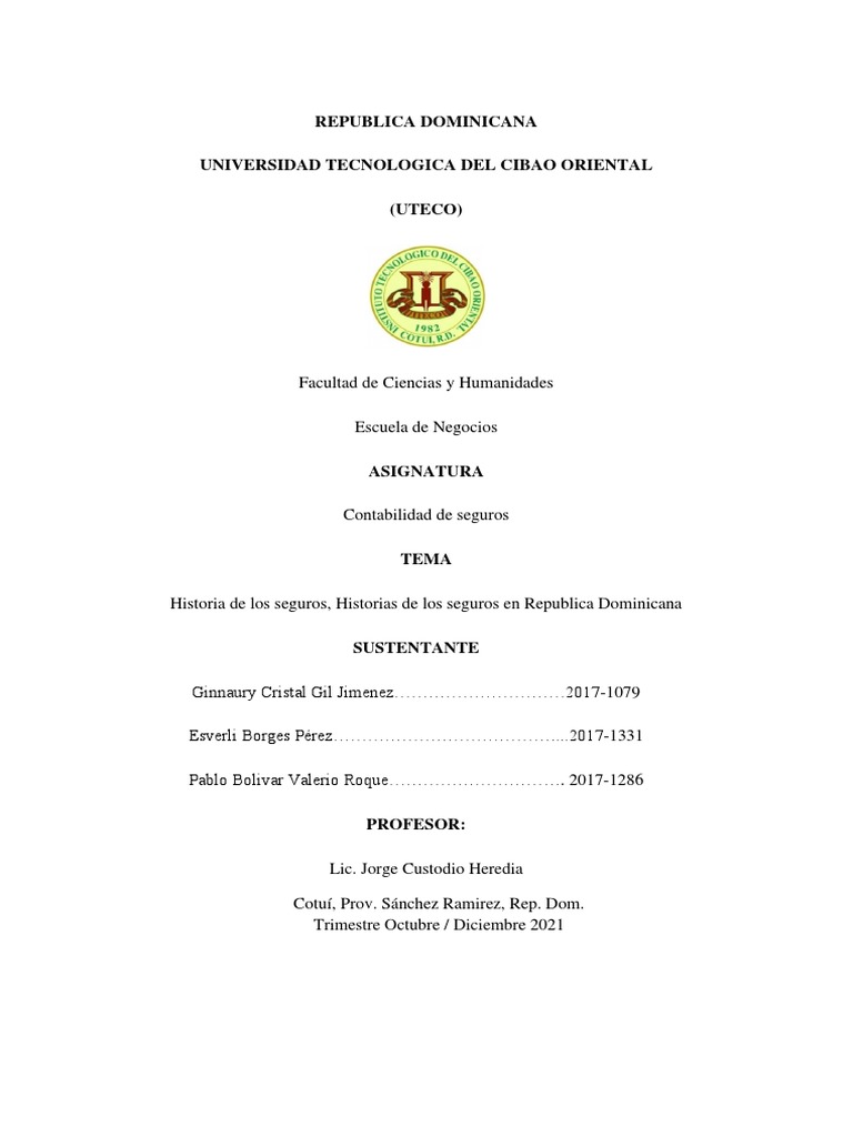 Historia de los seguros, Historias de los seguros en Republica Dominicana