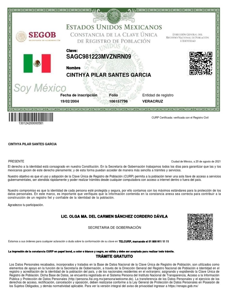 La impresión de la constancia CURP en papel bond, a color o blanco y negro, es válida y debe ser aceptada para realizar todo trámite.