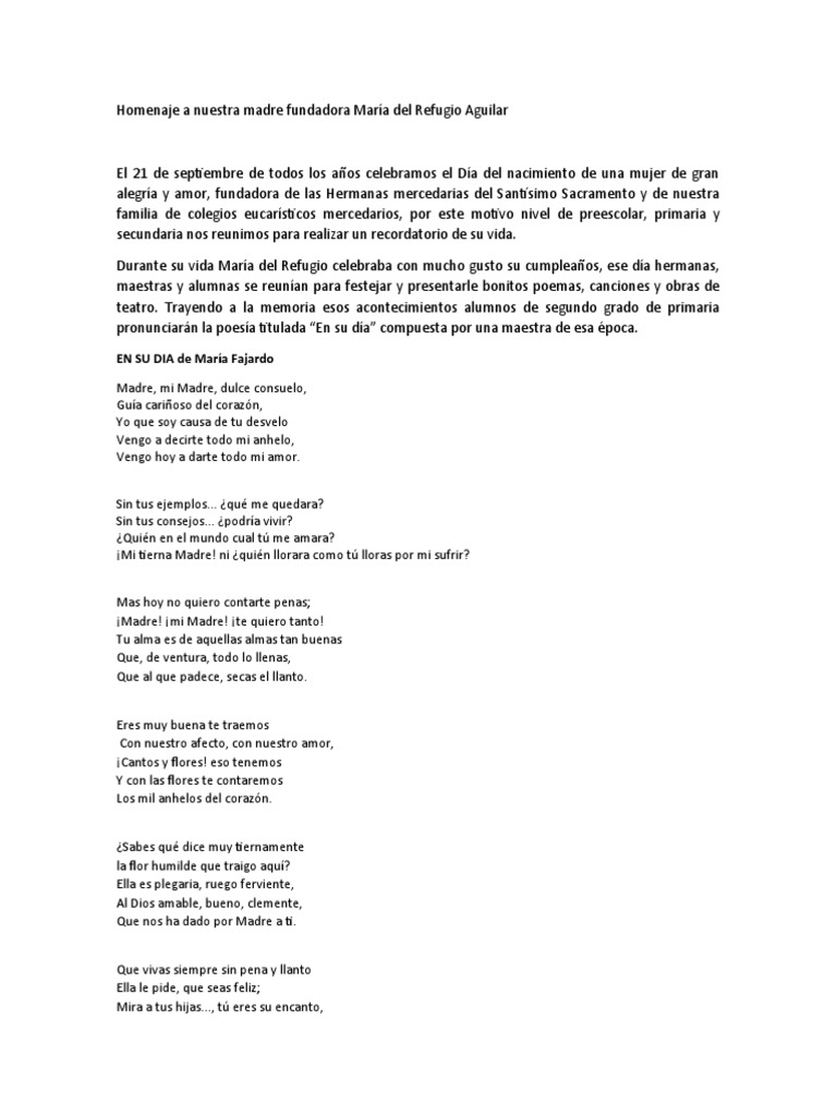 madre fundadora que siembre en nosotros fuego y amor para que seamos niños y niñas