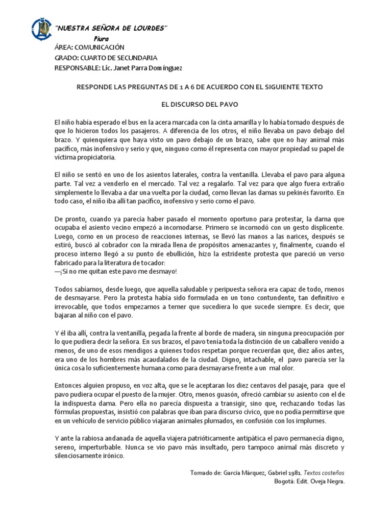 RESPONDE LAS PREGUNTAS 7 A 12 DE ACUERDO CON EL SIGUIENTE TEXTO