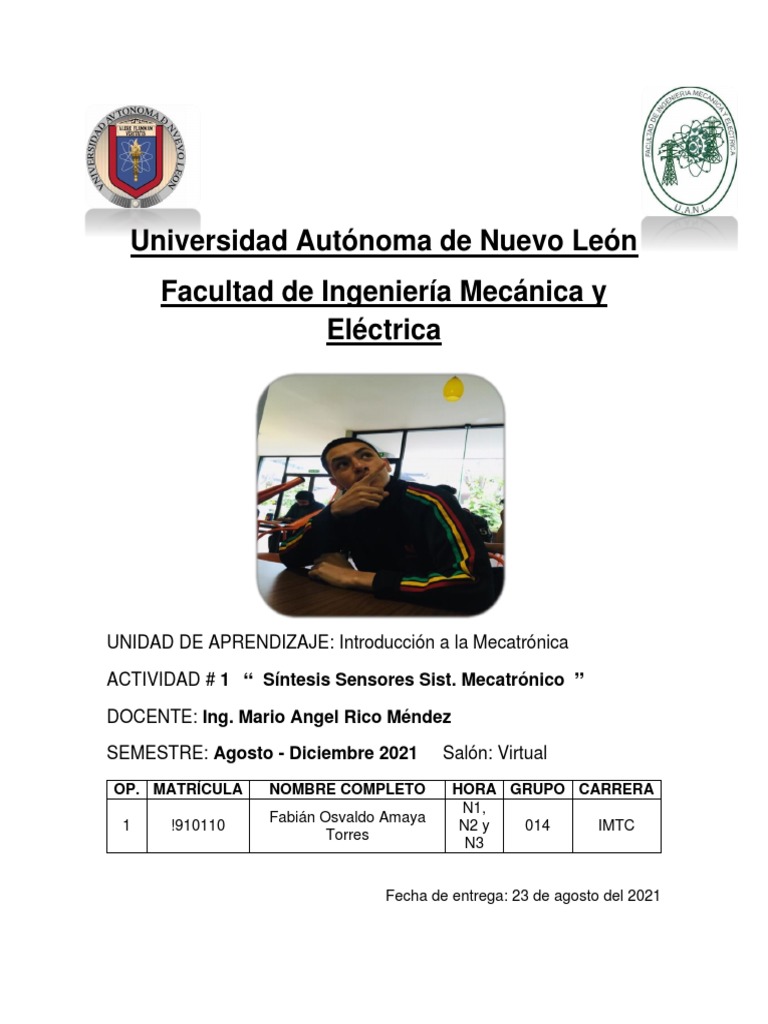 ACTIVIDAD # 1 “ Síntesis Sensores Sist. Mecatrónico ”
