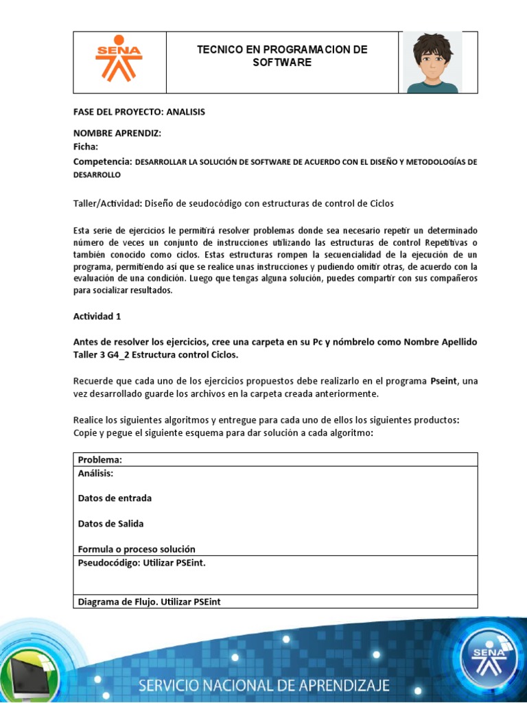 Taller/Actividad: Diseño de seudocódigo con estructuras de control de Ciclos