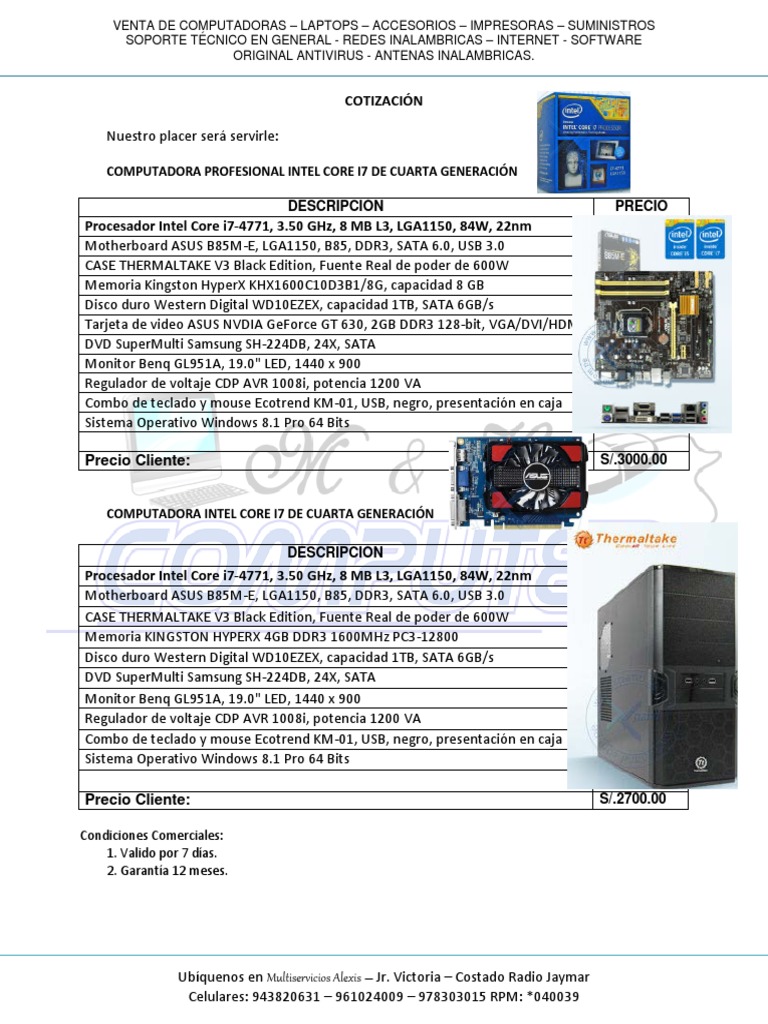 COMPUTADORA PROFESIONAL INTEL CORE I7 DE CUARTA GENERACIÓN