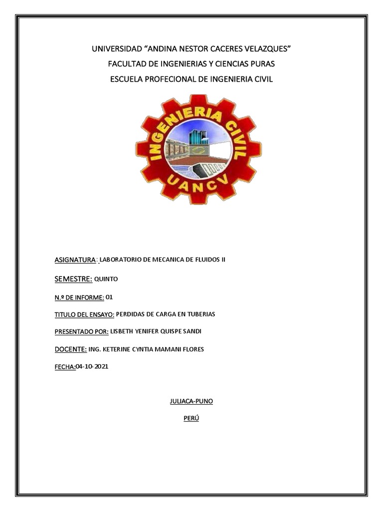 TITULO DEL ENSAYO: PERDIDAS DE CARGA EN TUBERIAS