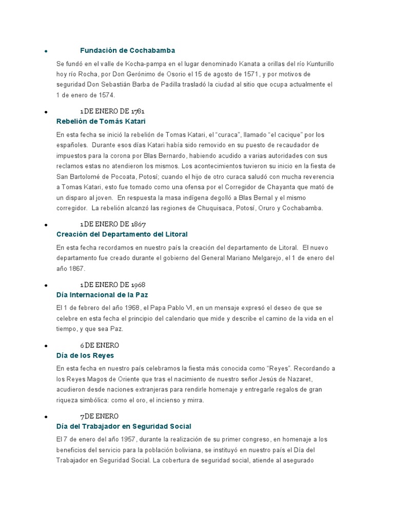 En este día mediante Decreto Supremo 0405 del 22 de enero de 2010 se instituyó el Estado