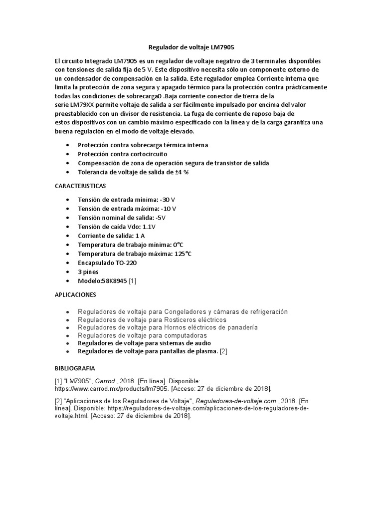 [1] "LM7905", Carrod , 2018. [En línea]. Disponible: