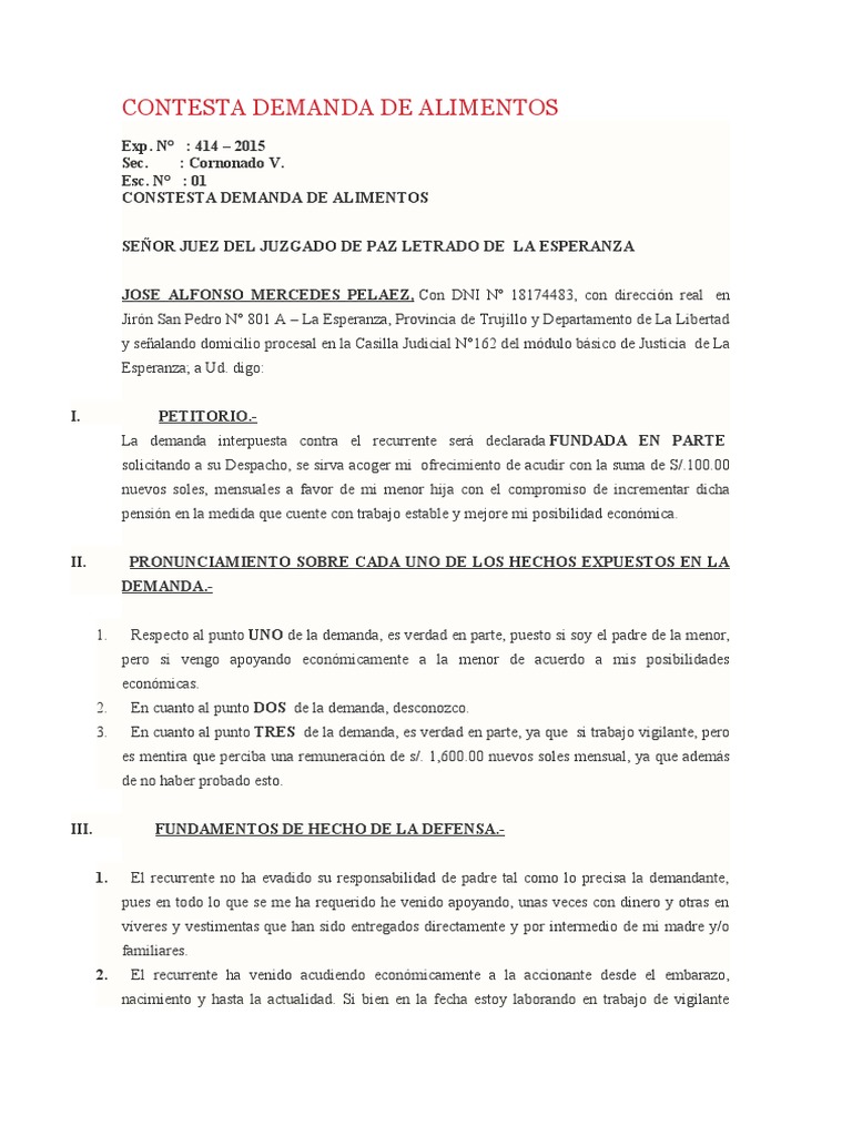 CONSTESTA DEMANDA DE ALIMENTOS