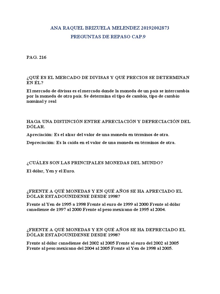 Depreciación: Es la caída en el valor de una moneda en términos de otra.